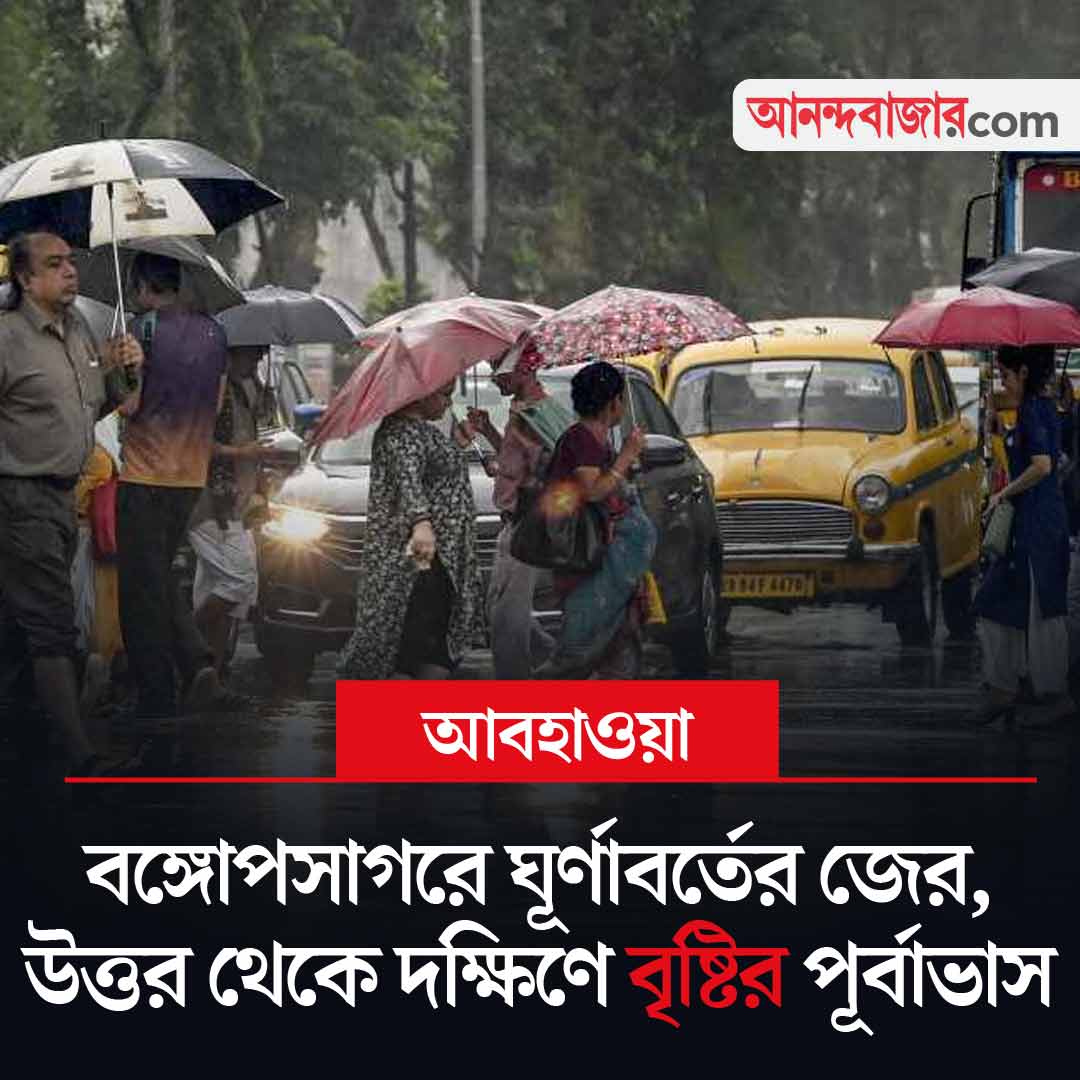 আলিপুর আবহাওয়া দফতর জানিয়েছে, পূর্ব উত্তরপ্রদেশ এবং সংলগ্ন বিহারের উপর একটি ঘূর্ণাবর্ত রয়েছে। সমুদ্রপৃষ্ঠ থেকে তার উচ্চতা ৩.১ কিলোমিটার। এর ফলে বঙ্গোপসাগর থেকে প্রচুর পরিমাণে জলীয় বাষ্প স্থলভাগে ঢুকছে। উত্তরবঙ্গের কোথাও কোথাও ভারী থেকে অতি ভারী বৃষ্টির সম্ভাবনা রয়েছে। এ ছাড়া হালকা থেকে মাঝারি বৃষ্টি চলবে দক্ষিণবঙ্গের জেলাগুলিতেও। এই সংক্রান্ত খবরের দিকে নজর থাকবে।