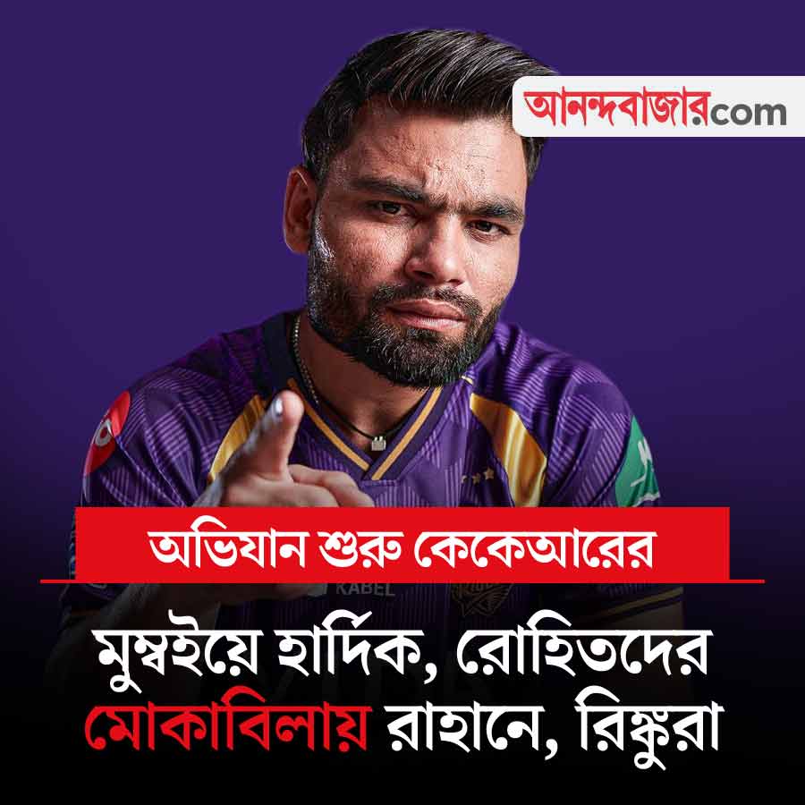 আইপিএলে আজ অভিযান শুরু করছে কলকাতা নাইট রাইডার্স। শুরুতেই কঠিন ম্যাচ। খেলতে হবে মুম্বই ইন্ডিয়ান্সের বিরুদ্ধে। গত মরশুমে মুম্বই একেবারেই ভাল খেলতে পারেনি। তবু নিজেদের মাঠে মুম্বই সবসময়ই কঠিন প্রতিপক্ষ। গত বার ওয়াংখেড়েতে মুম্বইয়ের কাছে উড়ে গিয়েছিল কেকেআর। অজিঙ্ক রাহানে-রিঙ্কু সিংহরা কি পারবেন হার্দিক পাণ্ড্য, রোহিত শর্মা, সূর্যকুমার যাদবদের হারাতে? খেলা শুরু সন্ধ্যা ৭:৩০ থেকে। খেলা দেখা যাবে স্টার স্পোর্টস চ্যানেল ও জিয়োহটস্টার অ্যাপে।