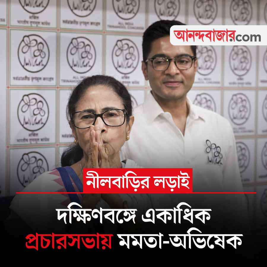 জেলায় জেলায় প্রচারে তৃণমূলের জোরদার তৎপরতা দেখা যাচ্ছে। আসন্ন নির্বাচনের প্রাক্কালে আজ একাধিক জনসভায় ব্যস্ত থাকছেন মমতা বন্দ্যোপাধ্যায় এবং অভিষেক বন্দ্যোপাধ্যায়। দলীয় সূত্রে জানা গিয়েছে, মুখ্যমন্ত্রী প্রথমে পুরুলিয়া জেলার মানবাজারে একটি প্রচারসভা করবেন। সেখান থেকে তিনি যাবেন বাঁকুড়া জেলার রাইপুরে, যেখানে দ্বিতীয় কর্মসূচি। দু’টি কর্মসূচি শেষ করে তিনি খড়্গপুরে পৌঁছে রাত্রিযাপন করবেন। অন্য দিকে, তৃণমূলের সর্বভারতীয় সাধারণ সম্পাদক অভিষেক আজ দু’টি জনসভা করবেন। তাঁর প্রথম সভা মুর্শিদাবাদ জেলার নওদায় এবং দ্বিতীয়টি উত্তর ২৪ পরগনার সন্দেশখালিতে।