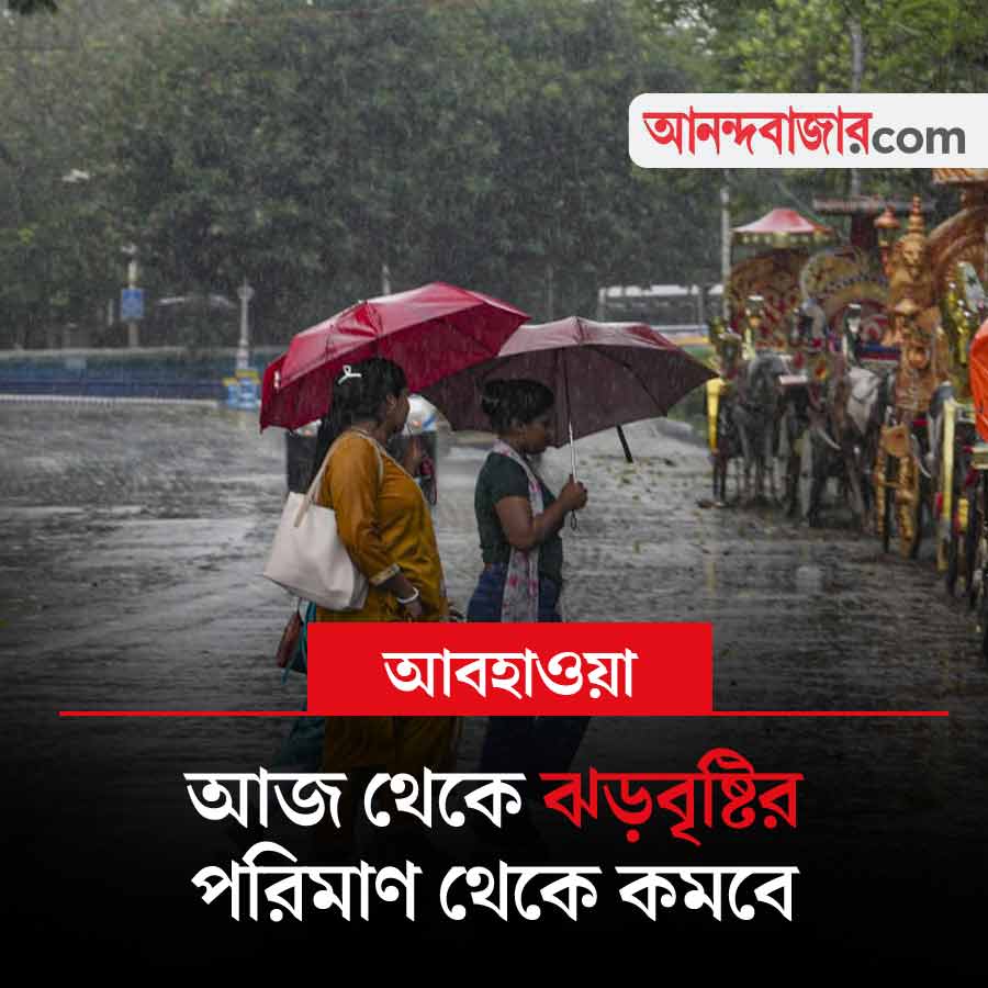 আজ থেকে দক্ষিণবঙ্গে ঝড়বৃষ্টির পরিমাণ কমবে। তবে বিক্ষিপ্ত ভাবে দু’-এক জায়গায় বৃষ্টি চলবে। আবার মঙ্গলবার দক্ষিণবঙ্গে বিক্ষিপ্ত বৃষ্টির পূর্বাভাস রয়েছে। রবি এবং সোমবার উত্তরবঙ্গে বৃষ্টির পরিমাণ কমবে, তবে বিক্ষিপ্ত বৃষ্টি চলবে। মঙ্গলবার আবার বৃষ্টি বাড়বে উত্তরবঙ্গে। জলপাইগুড়ি, কালিম্পঙে হতে পারে ভারী বৃষ্টি।