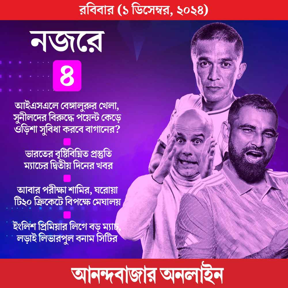 আইএসএলে আজ আবার নামছে বেঙ্গালুরু এফসি। গত ম্যাচে মহমেডানের বিরুদ্ধে হারা ম্যাচ একাই জিতিয়েছেন সুনীল ছেত্রি। জোড়া গোল করেছেন। আজ খেলতে হবে ওড়িশার বিরুদ্ধে। এই ম্যাচে বেঙ্গালুরু পয়েন্ট নষ্ট করলে সুবিধা হবে মোহনবাগানের। ওড়িশা কি পারবে মোহনবাগানের সুবিধা করে দিতে? খেলা সন্ধ্যা ৭:৩০ থেকে। খেলা দেখা যাবে স্পোর্টস ১৮ চ্যানেল ও জিয়ো সিনেমা অ্যাপে।
