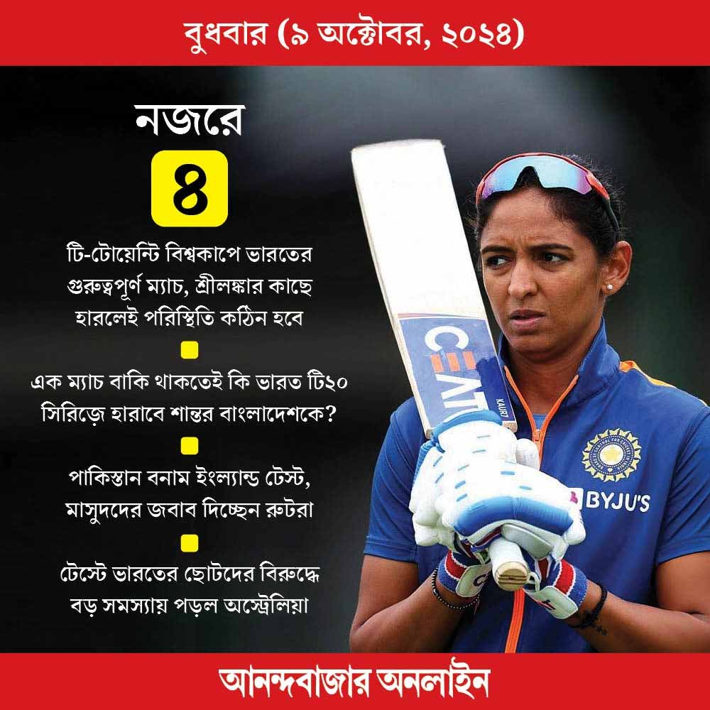 আজ ভারত বনাম বাংলাদেশ দ্বিতীয় টি-টোয়েন্টি ম্যাচ। জিতলেই এক ম্যাচ বাকি থাকতে সিরিজ় জিতে যাবে ভারত। মহিলাদের টি-টোয়েন্টি বিশ্বকাপে আজ ভারতের গুরুত্বপূর্ণ ম্যাচ। বিপক্ষে শ্রীলঙ্কা। এই ম্যাচে হেরে গেলে প্রতিযোগিতায় টিকে থাকা অত্যন্ত কঠিন হবে হরমনপ্রীত কউরের দলের। রয়েছে পাকিস্তান বনাম ইংল্যান্ড টেস্ট এবং ভারত-অস্ট্রেলিয়ার অনূর্ধ্ব ১৯ দলের চার দিনের টেস্ট।