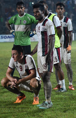 তখন উত্তপ্ত গ্যালারি। মাঠে আটকে মোহনবাগান ফুটবলাররা।
