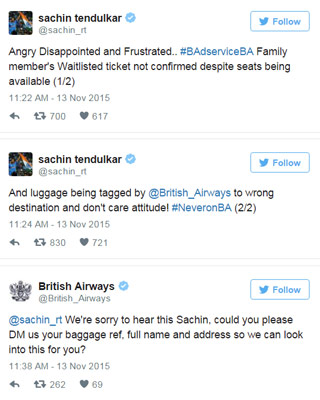 ভারতীয় ক্রিকেট কিংবদন্তির এই নালিশের পরিপ্রেক্ষিতে বিমান সংস্থার কাস্টমার সার্ভিস টুইট করে, ‘‘আমরা দুঃখিত সচিন। আপনার ব্যাগেজ রেফারেন্স, পুরো নাম ও ঠিকানা আমাদের পাঠিয়ে দিন। তার পর আমরা ব্যাপারটা দেখছি।’’ এর পরই সচিনভক্তরা তেলেবেগুনে জ্বলে ওঠেন। কয়েক মাস আগে মারিয়া শারাপোভা ‘সচিনকে চিনি না’ বলে সোশ্যাল মিডিয়ায় চরম আক্রমণের শিকার হয়েছিলেন।