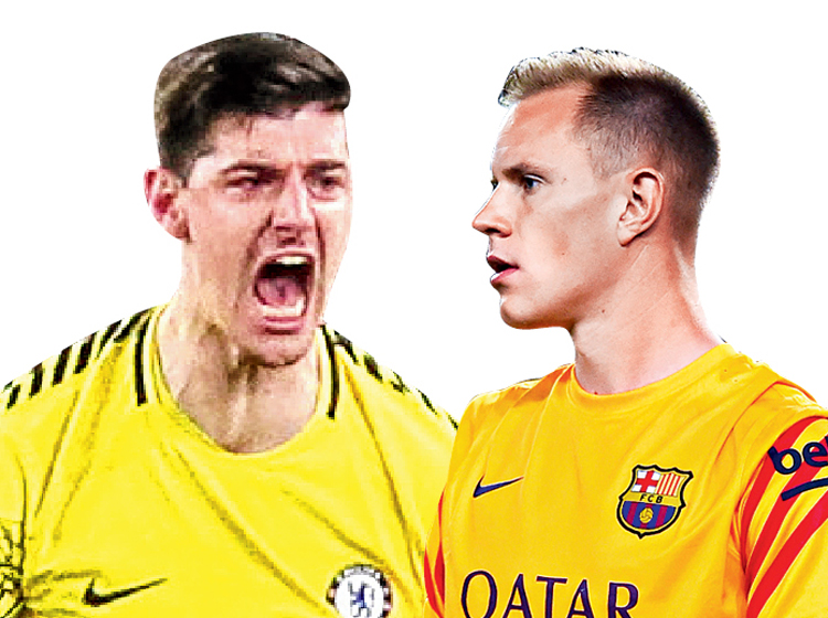 দুরন্ত ফর্মে বার্সেলোনার শেষ প্রহরী মার্ক আন্দ্রে টার স্টেগান (ডান দিকের ছবিতে)। এই মরসুমে চ্যাম্পিয়ন্স লিগে পাঁচ ম্যাচে মাত্র একটি গোল খেয়েছেন। গোল পোস্টের নীচে দাঁড়িয়ে দুর্দান্ত নেতৃত্ব দেন। একের বিরুদ্ধে এক পরিস্থিতিতে অসাধারণ। চেলসির থিবো কুর্তোয়া অবশ্য (বাঁ দিকের ছবিতে) এই মরসুমে ছন্দে নেই। চ্যাম্পিয়ন্স লিগে ছয় ম্যাচে আট গোল খেয়েছেন। অ্যাটলেটিকো ডি মাদ্রিদে খেলায় সময় মেসির বিরুদ্ধে দুর্ভেদ্য হয়ে উঠেছিলেন চেলসি গোলরক্ষক।