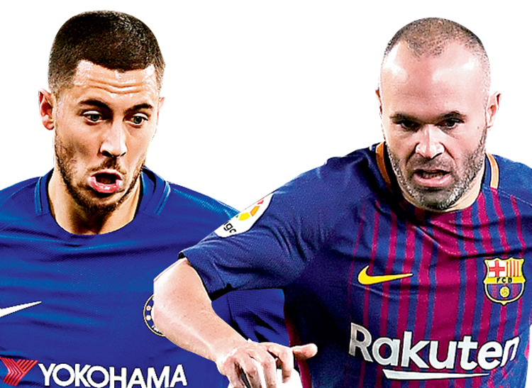 বার্সেলোনা মাঝমাঠের প্রধান অস্ত্র আন্দ্রে ইনিয়েস্তা (ডান দিকের ছবিতে)। লিওনেল মেসি, সুয়ারেসের সঙ্গে তাঁর দুর্দান্ত বোঝাপড়া প্রতিপক্ষের ডিফেন্ডারদের কাছে আতঙ্ক। চোটের কারণে চলতি চ্যাম্পিয়ন্স লিগে সব ম্যাচ খেলতে পারেননি ইনিয়েস্তা। সুস্থ হয়ে মাঠে ফেরায় চেলসি ডিফেন্ডার সিসার আতপিলিকুয়েতা বলেছেন, ‘‘আন্দ্রে এখনও প্রতিপক্ষের কাছে দুঃস্বপ্ন।’’ অস্ত্রোপচারের পরে ফের চেনা ছন্দে চেলসি তারকা এডেন অ্যাজার। চ্যাম্পিয়ন্স লিগে ছয় ম্যাচে তিনটি গোল করেছেন। সহায়তাও তিনটি। আক্রমণের পাশাপাশি দলকে সাহায্য করতে রক্ষণেও নেমে আসেন।