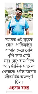 ছ’বছর আগে লাহৌরের লিবার্টি গোল চক্কর। শ্রীলঙ্কা টিম বাসের উপর জঙ্গিদের নির্বিচার গুলির দুঃসহ স্মৃতি আজও তাঁর মনে আছে ছবির মতো। সে দিন দু’টো গুলি তাঁর যকৃৎ আর ফুসফুস ফুটো করে বেরিয়েছিল। নিজের পায়ে ফের উঠে দাঁড়াতেই লেগে গিয়েছিল ছ’মাসের বেশি। তবু পাকিস্তানের মাটিতে আন্তর্জাতিক ক্রিকেটের প্রত্যাবর্তনের চব্বিশ ঘণ্টা আগে এহসান রাজা বলছেন, ‘‘নিজেকে এত দিনে সম্পূর্ণ মনে হচ্ছে!’’