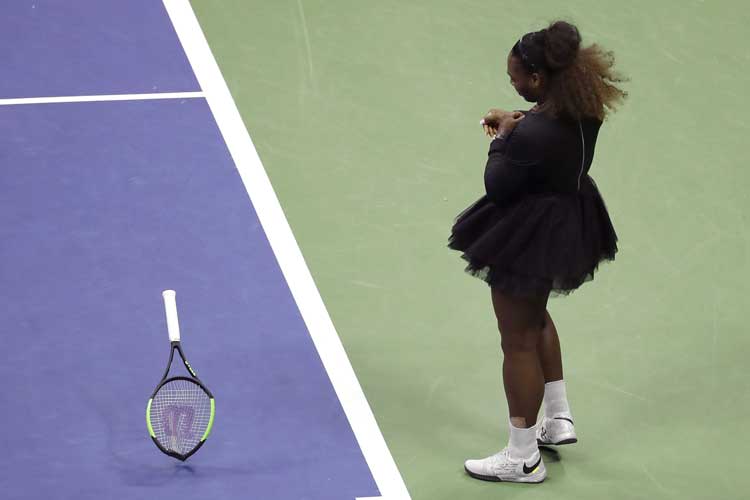 র্যাকেট ছুড়ে ভেঙে দিয়েছেন সেরেনা। ছবি: এপি