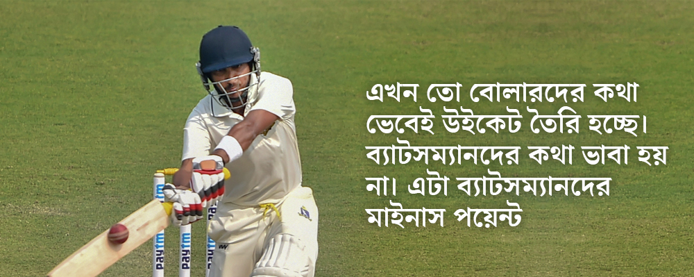 উৎপল: হ্যাঁ, এখন তো বোলারদের কথা ভেবেই উইকেট তৈরি হচ্ছে। ব্যাটসম্যানদের কথা ভাবা হয় না। এটা ব্যাটসম্যানদের মাইনাস পয়েন্ট। তবে যতই গ্রিন টপ হোক, চার দিন ধরে তো আর একই রকম থাকবে না। পরের দিকে ব্যাটিং সহায়ক হয়ে পড়ে। কিন্তু, তাতে ব্যাটসম্যানদের চরিত্র বদলায় না। ওরা প্রথম দিনে যেমন খেলছে, চতুর্থ দিনেও একই ভাবে খেলছে। পরে যখন মনে হচ্ছে যে আমি ধরে খেলব, সেই ধৈর্যটা আর থাকছে না। আধ ঘণ্টা-চল্লিশ মিনিট থাকার পরই ধৈর্য হারিয়ে যাচ্ছে।