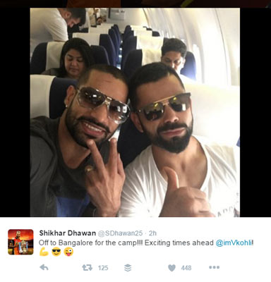 শিবিরে যোগ দিতে যাওয়ার পথে। এই ছবি টুইটারে পোস্ট করলেন শিখর ধবন।