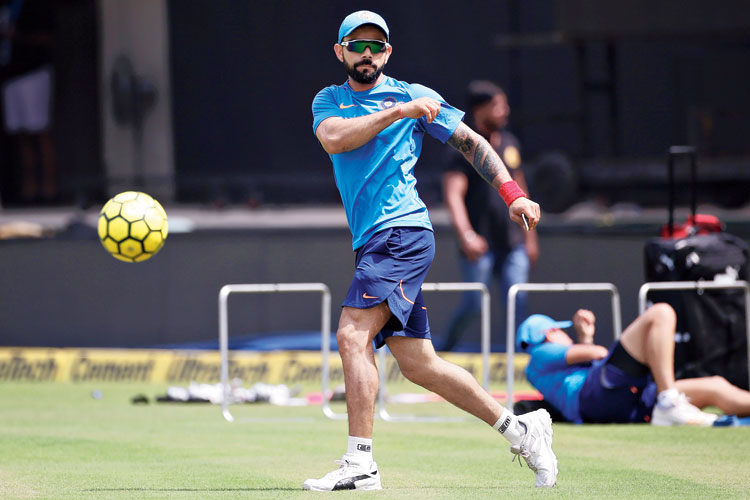 ফুটবলপ্রীতি: ক্রিকেট মাঠে অনুশীলনে ফুটবল নিয়ে এ ভাবেই খেলতে দেখা যায় ভারত অধিনায়ক বিরাট কোহালিকে। পছন্দ করেন সুনীল ছেত্রীকেও। ফাইল চিত্র