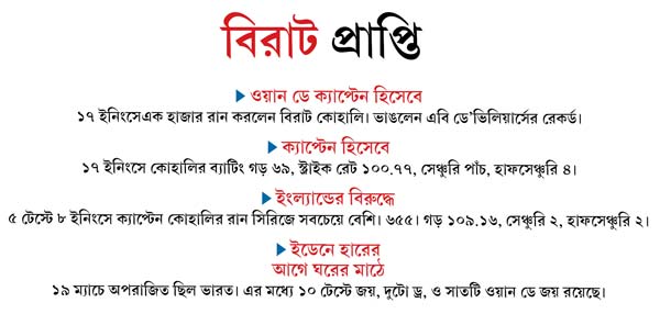 শুনে মনে হবে জাতীয় অধিনায়ক নয়, কথাগুলো বলছেন ভারতের কোনও ক্রিকেট পাগল সমর্থক। কিন্তু পরক্ষণেই বিরাটের ক্যাপ্টেন-সত্ত্বাটা বেরিয়ে আসে। যখন তিনি বলতে থাকেন, ‘টিম ভাঙাগড়ার মধ্যে দিয়ে যাচ্ছে’ জাতীয় অজুহাত তাঁর একান্ত অপছন্দের। ফলাফল ছাড়া অন্য কিছু নিয়ে ভাবতে চান না তিনি। কোহালির কথায়, ‘‘আমার টিম চরিত্র দেখিয়েছে, প্রমাণ করেছে যে তারা স্মার্ট ক্রিকেট খেলতে চায়, দেশের হয়ে ম্যাচ জিততে চায়।’’