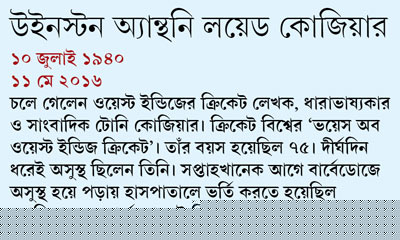 সরেজমিন ওয়েস্ট ইন্ডিজ সফরের আগে ধারণা ছিল এমন বিশ্বখ্যাত ভাষ্যকার গোটা দ্বীপপুঞ্জ জুড়েই একই রকম আরাধ্য হবেন। ভুলটা ভেঙে গেল পোর্ট অব স্পেন ওভালে। যখন প্রেসবক্সের বাইরে থেকে চিৎকার করে এক সমর্থক অকথ্য গালাগাল শুরু করল। কোজিয়ার অবিচলিত। একই মুখ নিয়ে কমেন্ট্রি করে যাচ্ছেন।