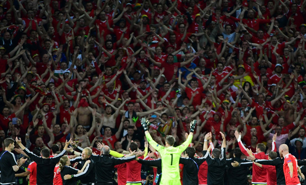 সেমিফাইনালে পৌঁছে সমর্থকদের শুভেচ্ছা নিচ্ছে ওয়েলস টিম। ছবি: টুইটার।