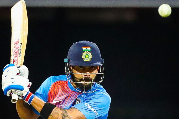 চার নম্বরে নেমে আট বলে কোহালি করেন মাত্র চার রান। ছবি: এএফপি