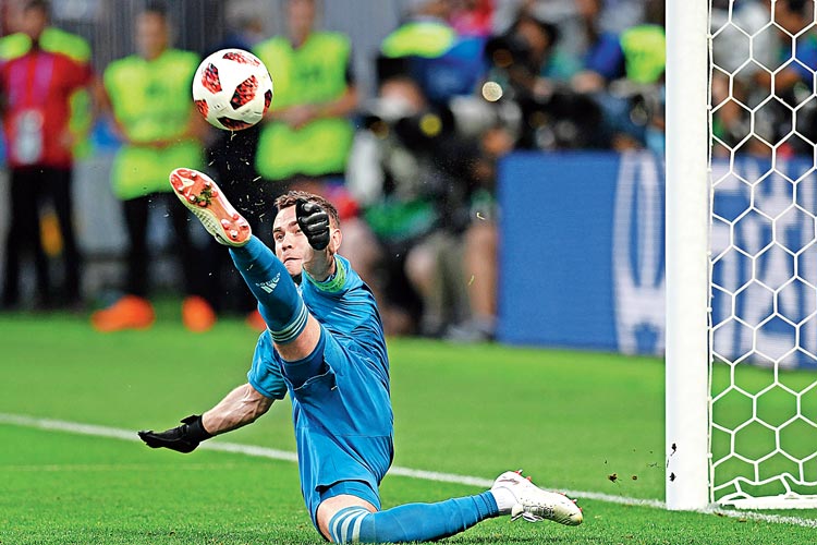 রবিবার বিশ্বকাপের প্রি-কোয়ার্টার ফাইনালে দু’টি ম্যাচই গড়িয়েছিল টাইব্রেকারে। রবিবারের দুই নায়ক দুই দলের গোলকিপার। রাশিয়ার ইগর আকিনফেভ এবং ক্রোয়েশিয়ার দানিয়েল সুবাসিচকে নিয়ে হইচই হওয়াটাই স্বাভাবিক। টাইব্রেকার আটকানোটা ফুটবল খেলার খুব বড় একটা কৃতিত্ব। তবে ওঁদের দুঃসাহসিক প্রচেষ্টার পাশাপাশিই চোখে পড়ল টাইব্রেকারের সময় ১৯টি শটের মধ্যে ১৫টাতেই গোলকিপার লাইন থেকে এগিয়ে এসেছিলেন। যা খেলার নিয়ম বিরুদ্ধ। প্রযুক্তির সাহায্য নিয়ে এ বারের বিশ্বকাপে রেফারিং হচ্ছে। তা হলে এই ভুলটা হবে কেন?