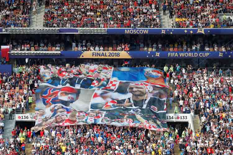 ক্রোয়েশিয়ার জার্সির রঙে বিশাল পতাকা গ্যালারিতে। —রয়টার্স