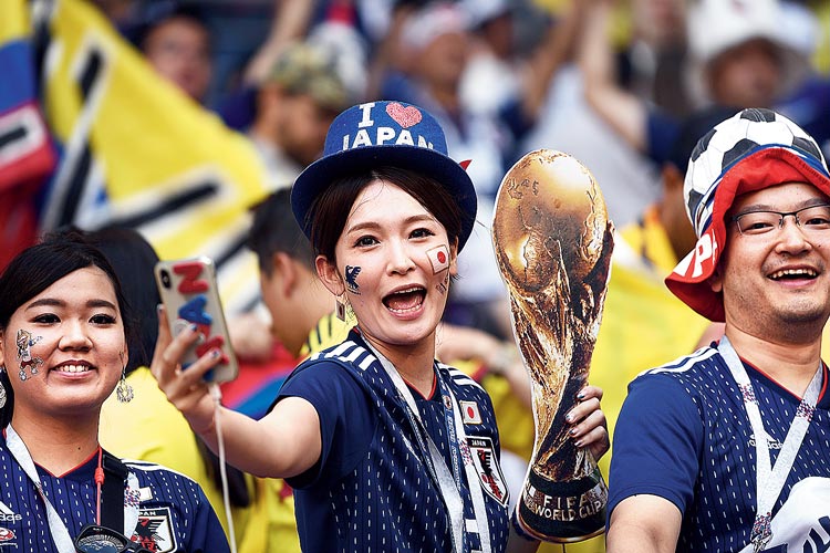 উৎসব: গ্যালারিতে উচ্ছ্বসিত জাপানের সমর্থকেরা। ছবি: গেটি ইমেজেস
