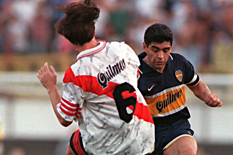 লাতিন আমেরিকার দেশের ক্লাবে মহাতারকা এখন বিরল। বোকা জুনিয়র্সের জার্সিতে মারাদোনা।