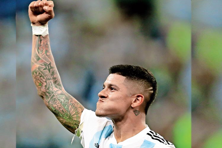 শ্বাসরুদ্ধকর পরিস্থিতিতে ১-১ থাকা অবস্থায় যিনি দ্বিতীয় গোলটি করলেন, সেই মার্কোস রোহো। অসাধারণ সাইড ভলিতে চলন্ত বলেই দুর্ধর্ষ গোল। তার পরেই দেখা গেল মেসি এসে লাফিয়ে উঠে পড়লেন রোহোর ঘাড়ে। একে একে এর পর ঝাঁপিয়ে পড়লেন দলের সকলে।