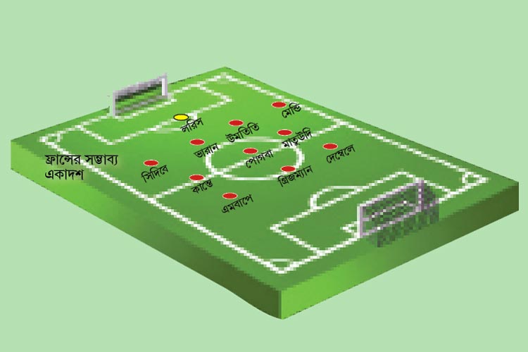 তারুণ্যে টগবগ করছে এ বারের ফ্রান্স দল। দুর্দান্ত গভীরতাও রয়েছে। প্রায় সব জায়গাতেই এমন সব ফুটবলার এ বার দেশঁর হাতে রয়েছে যে, কাকে ছেড়ে কাকে বসাবেন সেটাই বড় মাথাব্যথা হতে যাচ্ছে। ইউরোপা লিগে জোড়া গোল করা অতোয়াঁ গ্রিজম্যান, চেলসির অলিভিয়ে জিহু এবং প্যারিস সাঁ জারমাঁর কিলিয়ান এমবাপেকে নিয়ে তৈরি আক্রমণ ভাগ অন্যতম সেরা।
