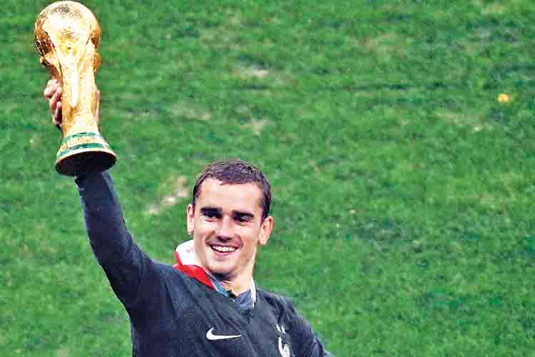 বিশ্বজয়ী: কাপ হাতে ফ্রান্সের গ্রিজ়ম্যানের উল্লাস। ছবি: রয়টার্স
