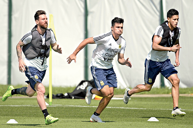 মহড়া: ক্রোয়েশিয়ার বিরুদ্ধে হারের যন্ত্রণা ভুলে নাইজিরিয়া ম্যাচের প্রস্তুতিতে লিয়োনেল মেসিরা। এই ম্যাচের উপরেই নির্ভর করছে বিশ্বকাপে আর্জেন্টিনার ভবিষ্যৎ। শনিবার।