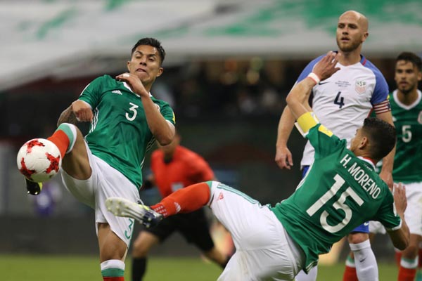 মেক্সিকো বনাম ইউএসএ ম্যাচের একটি মুহূর্ত।
