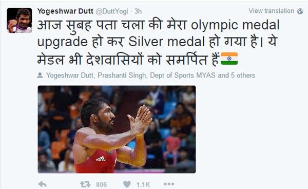 ছিল ব্রোঞ্জ, হয়ে গেল রুপো। ২০১২র লন্ডন অলিম্পিকে কুস্তিতে জেতা যোগেশ্বর দত্তের ব্রোঞ্জ রুপো হয়ে যাচ্ছে। কারণ, সে বার রুপো জেতা রুশ কুস্তিগীর বেসিক কুদুখোভের ডোপ টেস্ট পজিটিভ হয়েছে। কুদুখোভ অবশ্য বেঁচে নেই। ২০১৩ সালে এক পথ দুর্ঘটনায় মারা যান তিনি।