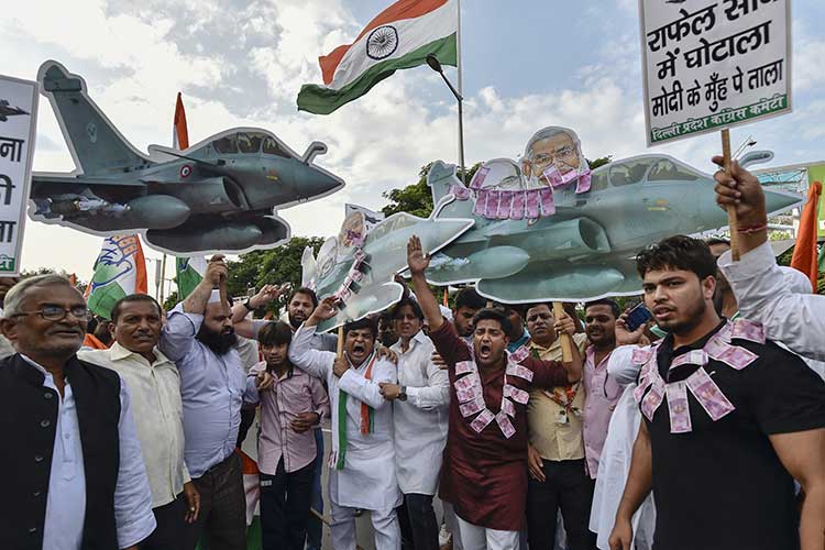 রাফাল চুক্তি নিয়ে নয়াদিল্লিতে বিক্ষোভ কংগ্রেসের।—ছবি পিটিআই।