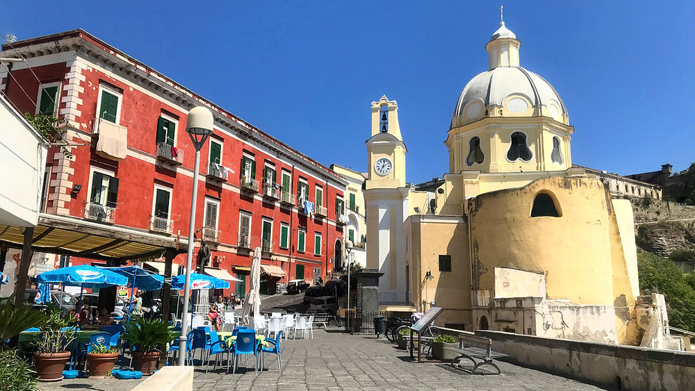 অগস্ট মাসের এক রোদ ঝকঝকে দিনে সুযোগ হয়েছিল প্রচিদায় কিছুটা সময় কাটানোর। নেপলস থেকে ফেরিতে করে প্রথমে পৌঁছলাম সেখানকার মারিনা গ্রান্দে, আইল্যান্ডের ব্যস্ততম জায়গা। পোর্টে নেমে কূলবর্তী রাস্তা ভিয়া রোমা ধরে বাঁ দিকে কিছু দূর এগিয়ে দেখতে পেলাম হলুদ রঙের চার্চ সান্তা মারিয়া দেল্লা পিয়েতা। চার্চের সামনেই মারিনা স্কোয়ার আর তার পাশের নীল জলরাশিতে ভাসছে ছোট-বড় আকারের বোট, যার মধ্যে বেশির ভাগই মাছ ধরার। স্কোয়ার থেকে আইল্যান্ডের মধ্যে চলে গিয়েছে ভিয়া ভিত্তোরিয়ো ইমানুয়েল, এই রাস্তা ধরে চলতে থাকলাম। প্রচিদা হল এমন এক জায়গা যেখানে পরিকল্পনাহীন ভাবে ইটালিয়ান অলিগলির আনাচকানাচে হারিয়ে যাওয়া যায়। চলতে চলতে পৌঁছে গেলাম মার্টার্স স্কোয়ারে বারোক স্টাইলের চার্চ সান্তা মারিয়া দেল্লা গ্রাৎজ়ির সামনে। চার্চটির জুতসই অবস্থান এবং সৌন্দর্যের জন্য এটি হয়ে উঠেছে এই দ্বীপের অন্যতম দ্রষ্টব্য। এখান থেকে নীচের দিকে রাস্তা চলে যায় মারিনা করিচেল্লার দিকে আর উল্টো দিকের চড়াই রাস্তা সালিতা কাস্তেল্লো যায় মধ্যযুগীয় স্থাপত্যের নিদর্শন ওয়ালড সিটি টেরা মুরাটার দিকে। বেলভদেরে অব টেরা মুরাটা থেকে বে অব নেপলস আর রঙিন মারিনা করিচেল্লার অসাধারণ যে দৃশ্য সে দিন দেখেছিলাম, তা ভোলার নয়।