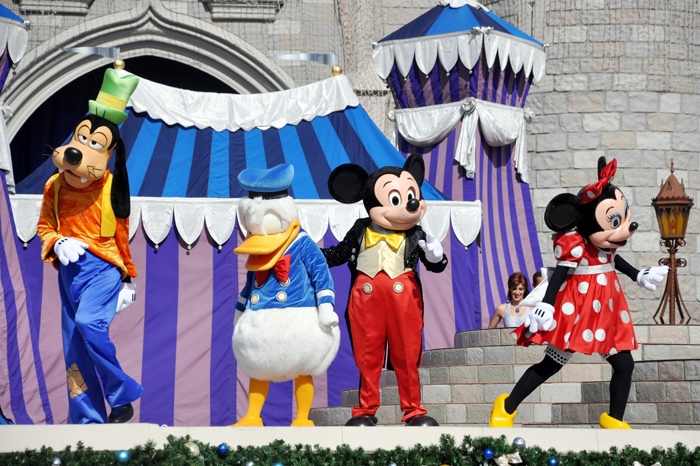 মঞ্চে হাজির মিকি মাউস, মিনি মাউস, ডোনাল্ড ডাক এবং গুফি।