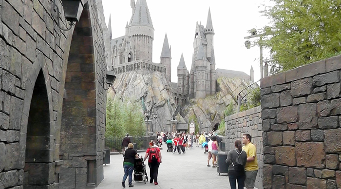সকাল সকাল আইল্যান্ডস অব অ্যাডভেঞ্চার-এ পৌঁছে আমরা প্রথমেই দেখতে গেলাম জাদুনগরী ‘দ্য উইজার্ডিং ওয়ার্ল্ড অব হ্যারি পটার’। সেই নগরীর কেন্দ্রে রয়েছে একটি দুর্গ। যার ভেতরে ঢুকলে দেখা যাবে তাক লাগানো সব ভেল্কিবাজি। কখনও দেওয়ালে টাঙানো প্রতিকৃতিরা নিজেদের মধ্যে বাক্যালাপ চালাচ্ছে। কখনও বা হাই-ডেফিনেশন থ্রি-ডি প্রজেকশনের দৌলতে হ্যারি পটার স্বয়ং হাজির হচ্ছে তার দলবল নিয়ে। বিস্ময়ের ঘোর কাটতে না কাটতে আমরা চড়ে বসলাম এক রাইডে, যার নাম ‘ফরবিডেন জার্নি’। মনে হল, যেন নিশ্ছিদ্র অন্ধকারের বুক চিরে আমরাও ঝাঁটায় চেপে হ্যারির সঙ্গে কোনও এক নিষিদ্ধ পথের পথিক হয়েছি। দুর্গ থেকে বেরিয়ে রয়েছে ‘ড্রাগন চ্যালেঞ্জ’— এটি একটি ইনভার্টেড রোলার কোস্টার অর্থাত্ এটাতে চাপলে মাথা নীচে পা উপরে করে ঘুরপাক খেতে হবে। যথারীতি, সায়ন মহা উত্সাহে একাই সেটায় চাপতে গেল। আর আমি? ভিডিও তোলার অছিলায় বাইরে দাঁড়িয়ে রইলাম।
