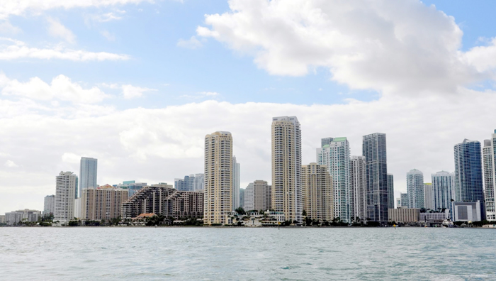 স্পিড বোট থেকে তোলা মায়ামি শহরের স্কাইলাইন