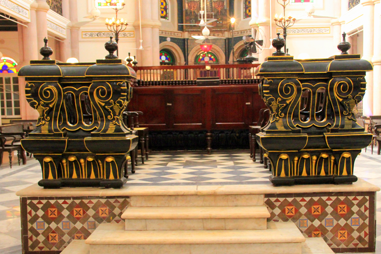 সিনাগগের অভ্যন্তর আজও অপেক্ষা করে প্রার্থনার। ছবি: লেখিকা।