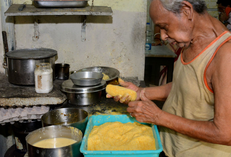 সেন্ট্রাল অ্যাভিনিউয়ের ধারের দোকান তার ঢের পরের কথা। বছর দশেক আগে ওই তল্লাটে এ-স্বাদরহস্যের খোঁজখবর করতে গিয়ে প্রায় গলাধাক্কা খেয়েছিলুম। ভরসন্ধেয় তিন ভয়ানক গম্ভীর বৃদ্ধ তখন একটি কথা না-বলে হোটেলের যাবতীয় কর্মকাণ্ড দেখভাল করতেন। জীবনকৃষ্ণের নাতি তাঁরা তিন জন। চপকাটলেট ভাজাভুজি থেকে শুরু করে ক্যাশ সামলানো— সব করেন স্বহস্তে। আর কোনওরকম প্রশ্ন শুনলে ভয়ানক ক্ষেপে ওঠেন। মিডিয়ার খবরওয়ালার কৌতূহলও সেই মগ্নতায় টাল খাওয়াতে পারেনি। স্বনামধন্য চিংড়ি কাটলেটের রেসিপি দূরে থাক, এত বড় ঐতিহ্যমণ্ডিত দোকানের ভূত-ভবিষ্যৎ নিয়ে একটা বাক্যও তিন বৃদ্ধের পেটে বোমা মারলে বেরোত না।