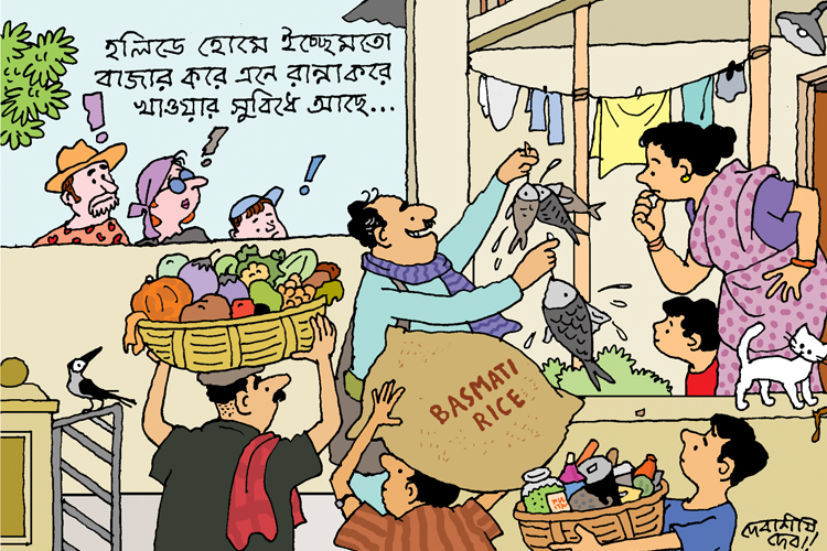 ট্রেনের টিকিট কাটা হয়ে যাওয়ার পর এ বার থাকার জায়গা ঠিক করার পালা। আগে যৌথ পরিবারের সতেরো-আঠেরো জন যখন একসঙ্গে বেড়াতে যেত, তখন গোটা বাড়ি ভাড়া নেওয়ার রেওয়াজ ছিল। ছোট পরিবারওয়ালা গেরস্ত সবসময় চেষ্টা করত যদি কোনও ভাল হলিডে হোমের সন্ধান পাওয়া যায়। কারণ হলিডে হোমে ইচ্ছেমতো বাজার করে এনে নিজেরা রান্না করে খাওয়ার সুবিধে থাকে, ফলে বেড়ানোর খরচ অনেকটাই কমে যায়। হলিডে হোমের পর তার চয়েস ছিল গেস্ট হাউস বা ধর্মশালা। এ জন্য বন্ধুবান্ধব, আত্মীয়স্বজন কোথাও বেড়াতে গেছে শুনলেই, সে কোথায় উঠেছে, এটা ভাল করে জেনে নিয়ে নোট করে রাখত। সমুদ্র বা পাহাড়ের কাছে গেলে, ঘরের জানলা দিয়ে তাদের দেখা যায় কি না এটাই ছিল ঘর বাছার প্রধান ক্রাইটেরিয়া।