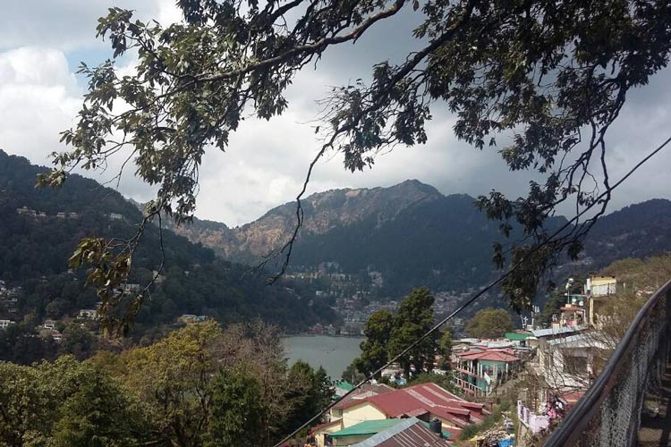 পাহাড়ের এক ঢাল থেকে দৃশ্যমান নৈনি লেক।