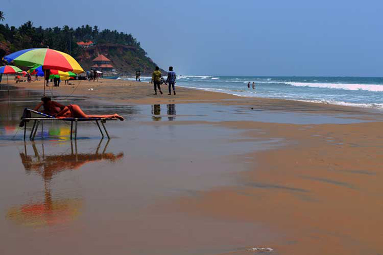 মালয়ালম ভাষায় বল্কল শব্দের অর্থ ভাল্লাকালাম। কথিত আছে, দেবর্ষি নারদ এখানে বল্কল ত্যাগ করেছিলেন। ভাল্লাকালাম থেকেই এ স্থানের নামকরণ হয়েছে ভারকালা। সোনালি বালুকাতট, নীলচে সবুজ সাগর, সবুজ নারকেল গাছের প্যারেড আর পাহাড়ের লাল দেওয়াল— প্রকৃতির এই হরেক রঙের শেড মন কেড়ে নেয়। ক্লিফ, অর্থাৎ পাহাড়ের এই লাল খাড়াই খোয়াইয়ের মতো অংশটা সমুদ্রতটের গা ঘেঁষে দাঁড়িয়ে আছে। পাহাড়ের উপর থেকে দেখা বেলাভূমি যেন ক্যালেন্ডারের ছবি। বালির বুকে রংবেরঙের ছাতা যেন খেলনার মতো সাজানো আছে।