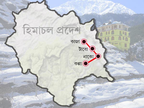 কাজা: স্পিতি উপত্যকার এক শীতল মরুর দেশ। ঘন নীল আকাশে ভেসে বেড়ায় সাদা পেঁজা তুলোর মতো মেঘ। জেলার সদর শহর ৩৬০০ মিটার উচ্চতার এই শহরকে মিনি তিব্বতও বলে থাকেন অনেকে।