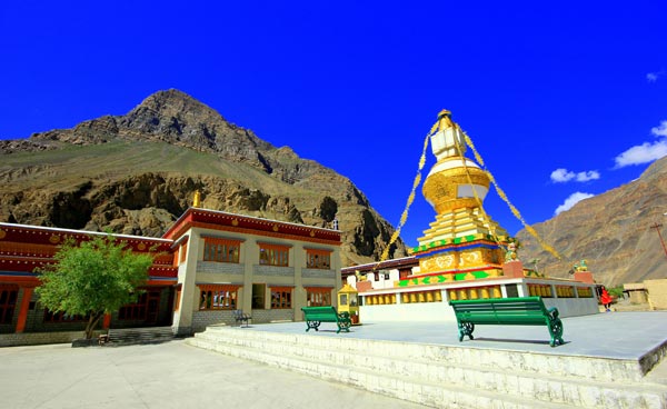 কাজা থেকে ২২ কিমি দূরে কি মনাস্ট্রি। ৪১১৬ মিটার উচ্চতায় এক ঝুরো পাহাড়ের কোলে দুর্গের আদলে গড়া এই গুম্ফার অন্দরমহলে থাঙ্কা আর ফেস্কোচিত্র মন ভরিয়ে দেবে।