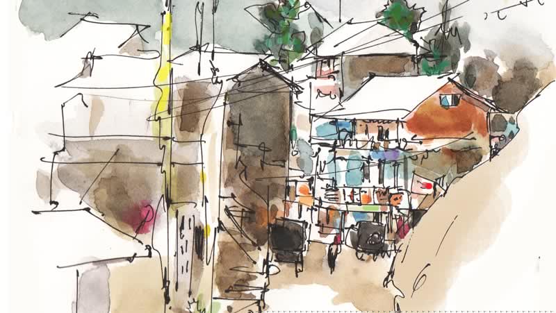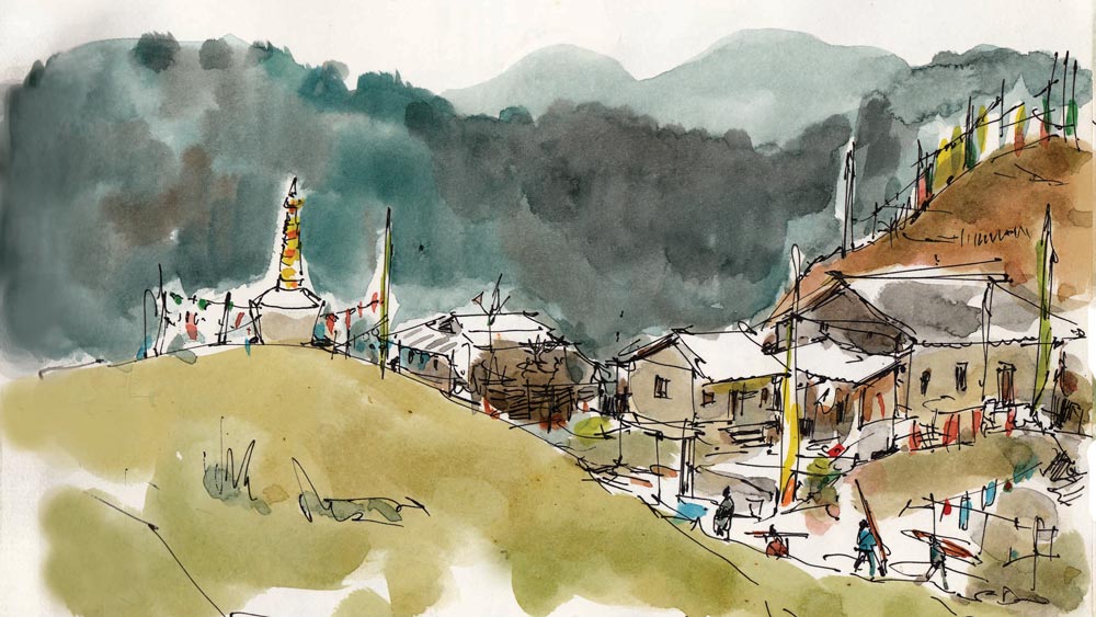 ঠিক হল, মার্চের গোড়ায় রওনা দেব— আমি আর আর্টিস্ট বন্ধু অভিজিৎ, আমার থেকে দশ বছরের ছোট আর ন্যাশনাল জিওগ্রাফিক গুলে খাওয়া ছেলে। ট্রেকিংয়ে যাওয়া ওর-ও এই প্রথম। ছবি আঁকাই আমার পেশা। আর্ট কলেজে থাকতে ‘আউটডোর স্কেচিং’ ব্যাপারটা চুটিয়ে উপভোগ করতাম, অথচ পরে আর বেড়াতে গিয়ে বসে বসে ছবি আঁকার ইচ্ছে হয়নি। মাঝে কেটে গেছে কুড়িটা বছর। সান্দাকফু যাওয়ার তোড়জোড় যখন তুঙ্গে এক বন্ধু একটা ইংরেজি বই এনে দিল— চেন্নাই থেকে ছাপা, লেখক তামিল ডাক্তার যিনি এক অভিযাত্রী দলের সঙ্গে পাহাড়ে চড়েছিলেন এবং যাবতীয় অভিজ্ঞতা অতি সরস ভাষায় বর্ণনা করেছেন বইটিতে। সেই সঙ্গে রয়েছে লেখকেরই আঁকা বেশ কিছু লাইন স্কেচ। চোখের সামনে যা দেখেছেন সহজ ভঙ্গিতে এঁকে নিয়েছেন। এর মধ্যে পাহাড়, জঙ্গল যেমন আছে তেমন আছে দড়ি-গাঁইতি, তাঁবুর মতো পাহাড়ে চড়ার সরঞ্জাম কিংবা কম্বল মুড়ি দিয়ে শুয়ে থাকা কোনও যাত্রাসঙ্গী। ভদ্রলোক গোড়াতেই স্বীকার করে নিয়েছেন, আঁকা বা লেখা কোনওটাই তাঁর কাজ নয়, স্রেফ মজার ছলে করেছেন। ঠিক এই কারণেই বেড়ানো নিয়ে তাঁর এই ডকুমেন্টেশন এতই স্বতঃস্ফুর্ত হয়েছিল যে এক ধাক্কায় যেন ফিরে এল আমার সেই ‘আউটডোর স্কেচিং’-এর দিনগুলো। ফলে সান্দাকফু রওনা হওয়ার আগে নতুন উৎসাহে রুকস্যাকের মধ্যে ভরে নিলাম একটা পাতলা ড্রয়িংখাতা।