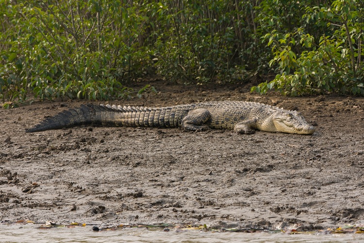 লঞ্চ থেকেই দেখা মিলবে কুমিরের। ছবি: প্রবীর চক্রবর্তী।