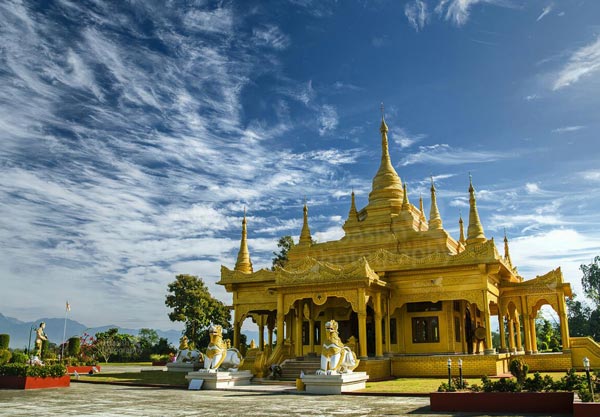নামসাইয়ে বর্মি কায়দায় গড়া সোনালি প্যাগোডা বা কোংমু খাম। ছবি: দেবাশিস রায়।