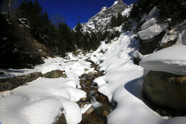 ছিটকুল: কাছেই তিব্বত সীমান্ত। বসপা নদী বয়ে গিয়েছে তার আপন খেয়ালে। শীতে বরফের চাদরে ঢেকে থাকে। ঠিক যেন বরফের বাগান।