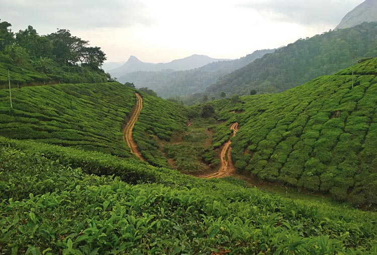 চা-বাগানে ঢাকা মুন্নারের পাহাড়।
