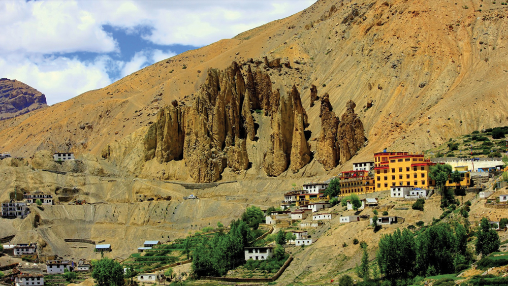 ট্রান্স হিমালয়ের হিমেল হাওয়া জড়ানো গ্রামে নির্মিত গুম্ফাগুলি তিব্বতি ফেসকো-শৈলিতে ভগবান বুদ্বের নানা জীবনগাঁথার অঙ্কিত রূপের বাহার অপূর্ব। তিব্বতের থোলিং ও লাদাখের হেমিজ গুম্ফার পরেই টাবো গুম্ফা। ইউনেস্কো-র ওয়ার্ল্ড হেরিটেজ সাইটের তালিকায় টাবো গুম্ফার নাম উঠে এসেছে। এই গুম্ফার মাটির দেওয়ালে ভেষজ রঙে ভগবান বুদ্বের জাতক কথামালার বাহারে শুধুই বিস্ময়। সুংলাখাং গুম্ফা, কালচে ধূসর পাহাড়ের গা ঘেঁষা ধানকার মনাস্ট্রি, পো গুম্ফা উল্লেখযোগ্য।