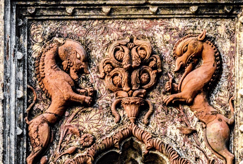 মন্দিরের গায়ে টেরাকোটার কাজ আজও অক্ষত রয়েছে