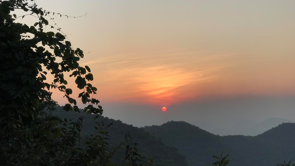 চন্দ্রশেখর শিবের মন্দির দেখে নামার সময় এক বাঁকের মুখে গাড়ি থামাতেই হল। উপত্যকার বুকে অসাধারণ সূর্যাস্ত হচ্ছে। খাদের ধারে অরণ্যের সিল্যুট যেন পটে আঁকা ছবি। এখান থেকেই পাহাড় কাটা সিঁড়িপথ নেমেছে নীচে। দু’পায়ের ওপরে ভরসা থাকলে এটাই শর্টকাট। দেড় কিমি মাত্র, পাহাড়তলির চিড়িয়াখানা থেকে। সারা পথে সঙ্গ দেয় একটি বারোমেসে ঝর্নার কলতান।