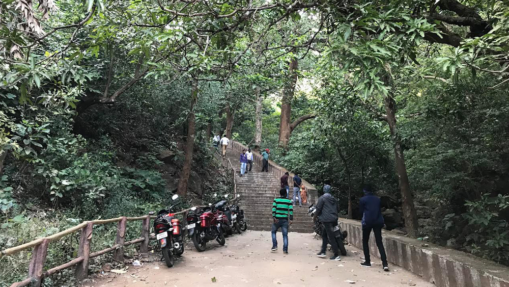 চিড়িয়াখানা থেকে ৫ কিমি গাড়িতে মন্দিরের সামনে। পাহাড়ি রাস্তায় একের পর এক হেয়ারপিন বেন্ড। দূরে অরণ্য অধ্যুষিত উপত্যকা। মন্দিরে ঢোকার মুখে পুজোর উপাচার ও স্মারক কেনাকাটার কয়েকটি দোকান। দোকানিরদের হাতে বড় লাঠি, হনুমানদের ভয় দেখিয়ে দূরে রাখার জন্য। কারণ, এখানে তারা সংখ্যায় অগণিত এবং সকলেই মহা বিচ্ছু। মন্দির থেকে হাঁটা পথ গিয়েছে সরকারি পরিদর্শন বাংলোর পাশ দিয়ে পাহাড়ের মাথায়। সেখান থেকে পাখির চোখে চারপাশের বিস্তীর্ণ এলাকা নজরে পড়ে।